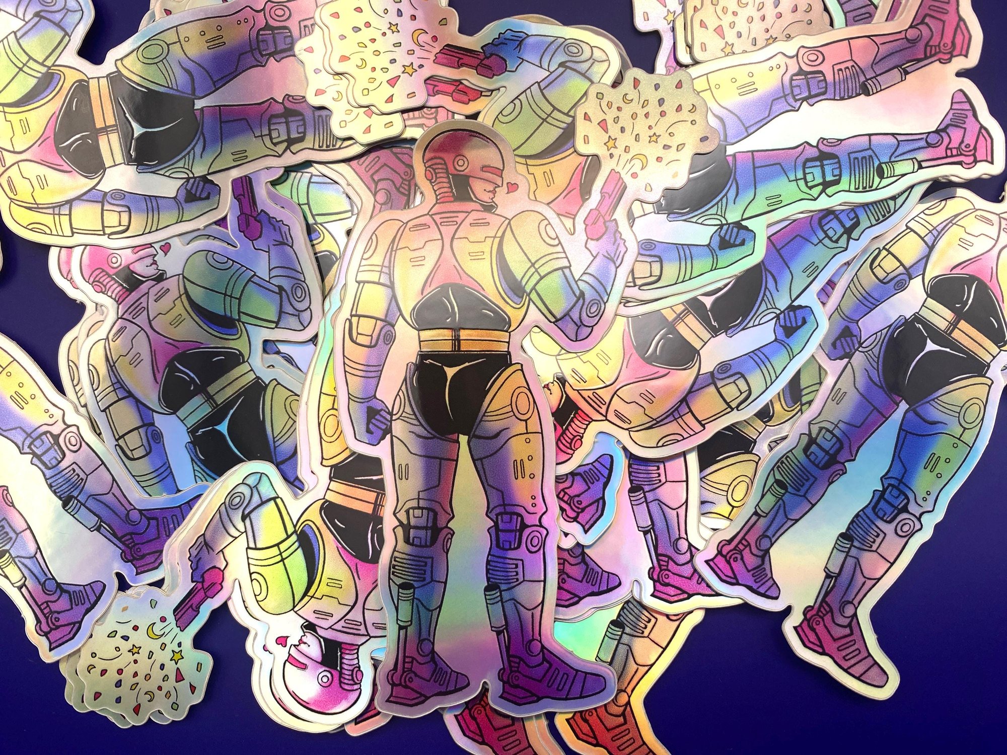 Meet RainbowCop. He is half flesh, half robot, all rainbow. Complete with confetti launcher.