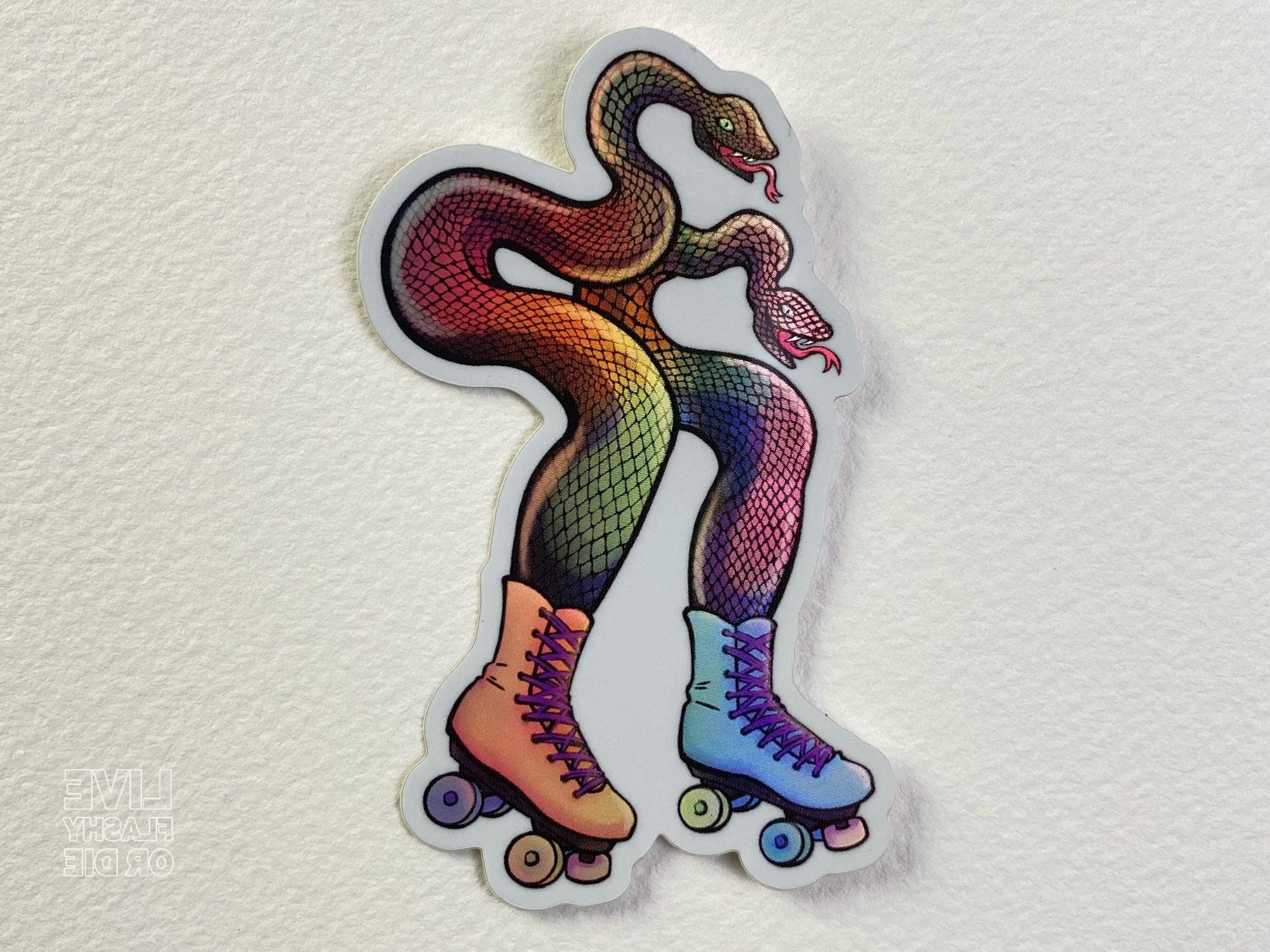 Rainbow Snakes in Skates Sticker - Reverse Facing